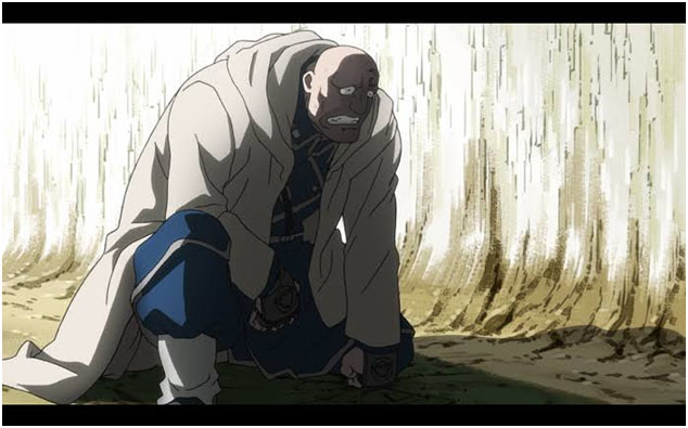 An analysis of Fullmetal Alchemist would be incomplete without examining the perspectives of the victims of the civil war, the Ishvalans. Arakawa does a creditable job of exploring the condition of the unfortunate victims. Not even once does she paint them as helpless victims, dependent on sympathy. Arakawa’s genocide sufferers are dignified, often vengeful, and sometimes merciful. The character of Lieutenant Miles is a prime example of the Ishvalan sense of integrity. In his conversation with the manga’s main protagonist, Edward Elric, the lieutenant expresses his desire to be treated like an equal instead of a target of pity. The scholar Lauren Trong has rightly observed that the anime can be associated with a high modicum of overarching trauma consuming the very flow of the story.[12] The characters are in a state of constant battle with their sense of guilt and their tempestuous road to recovery, while never truly overcoming their individual trauma.