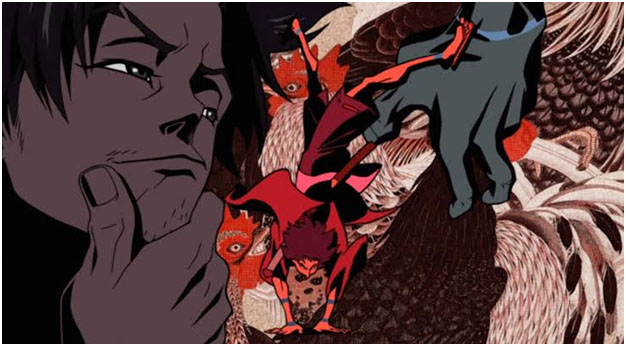 Satoshi Kon is no stranger to surrealist concepts. He has exploited its infinite manifold adaptability in his other masterpieces Perfect Blue, Paranoia Agent, and Paprika. To confine the film within the conformities of the biographical genre would be an understatement. Millennium Actress is not merely the sketch of the painful longing of a tragic actress or an abbreviated reiteration of Japanese history, it is Kon’s homage to Japanese cinema, especially the legendary maestros Akira Kurosawa and Yasujiro Ozu. References to Throne of Blood, The Tale of Zatoichi, Seven Samurai, the pop culture icon Godzilla, the Noriko Trilogy, and Kubrick’s 2001: A Space Odyssey are scattered throughout the film’s lucid dreamscapes. It is in Chiyoko’s leaps from the sets of one classic film to the other that the viewer comes to notice Kon’s masterful play with magical realism. There is a critical misapprehension of the nature of surrealist films which is a result of a collective failure in acknowledging its naturalistic features.[25] Surrealism does not advocate fantastical films but incorporates fantasy and sublimity as constitutive parts of visual reality. The core technique in Millennium Actress rests on the presentation of Chiyoko’s life in the form of her transcendental escapades through the sets of the films. Manisha and Maitreyi Mishra have identified five elements of magic realism present within Kon’s works following the lines of Wendy Faris’ classification of magical realism.[26]